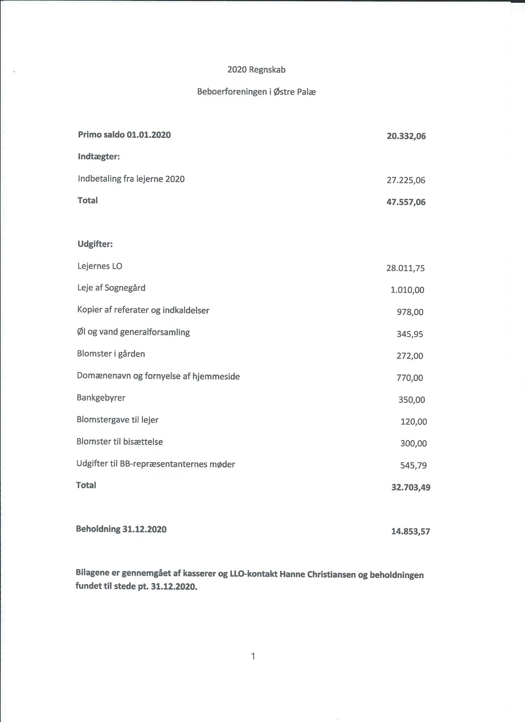- Den foreslåede forhøjelse af beløb til dækning af udgifter ved beboerrepræsentanternes arbejde til 35 kr/lejer/måned gældende fra 1. April 2021 er vedtaget;